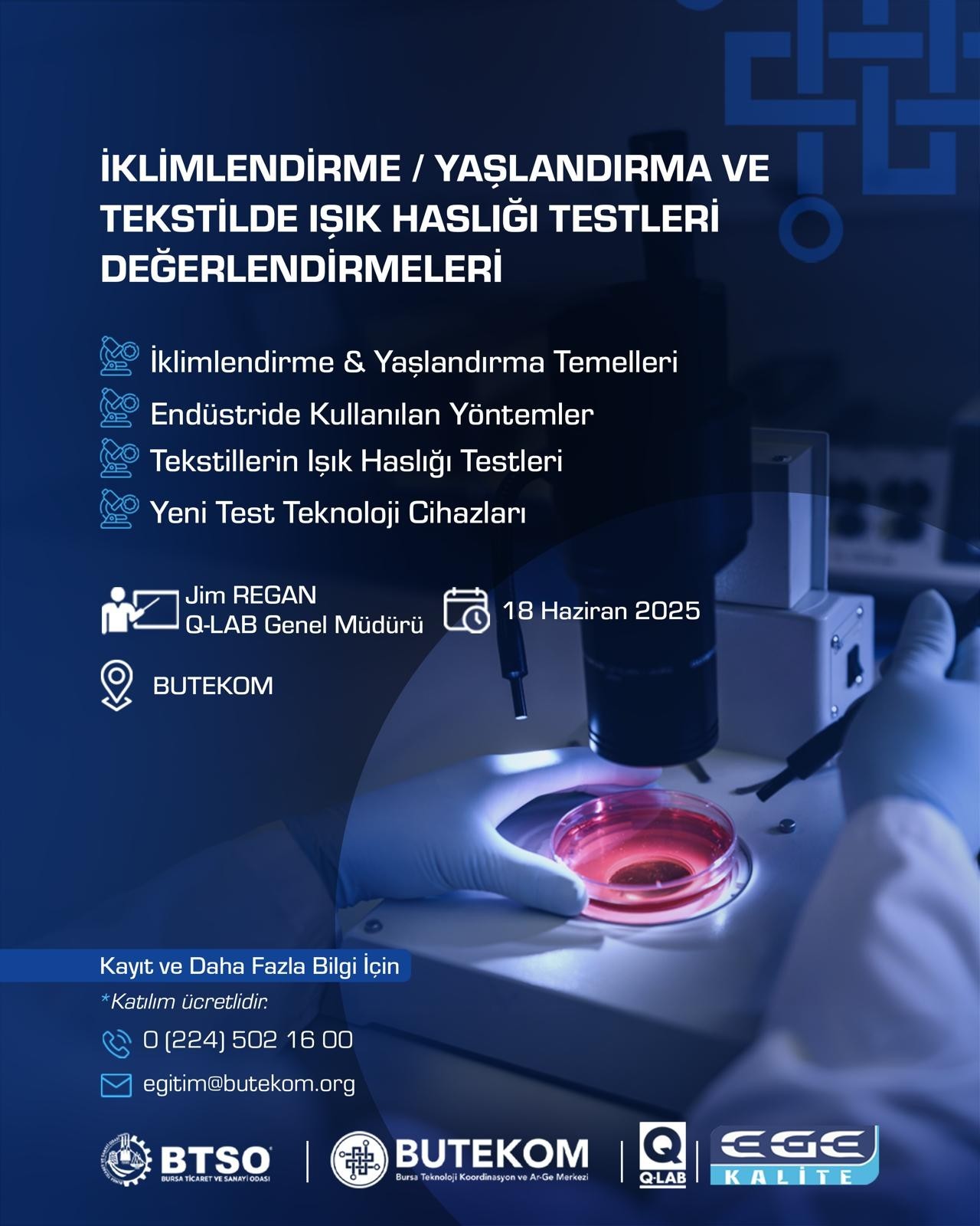İklimlendirme/Yaşlandırma ve Tekstilde Işık Haslığı testleri ve değerlendirmeleri konulu seminerimizde sizleri aramızda görmekten memnuniyet duyarız,